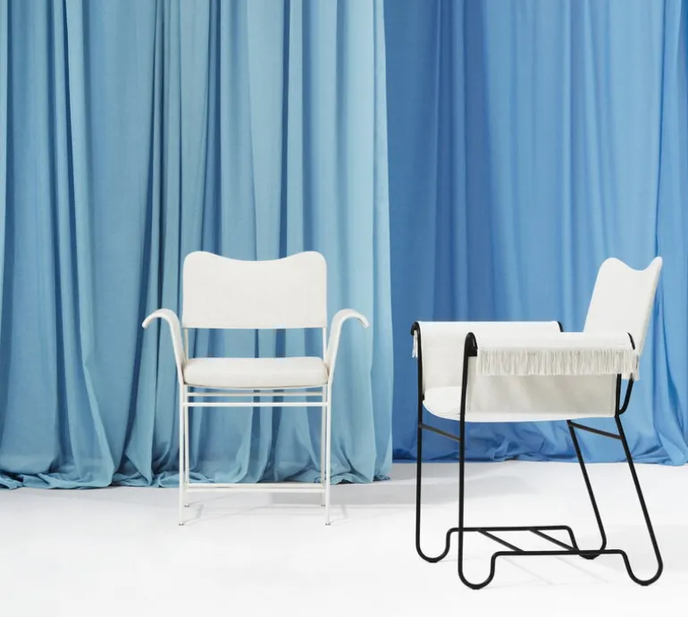 Utomhusstolen Tropique från GUBI utstrålar glamour och lyx som andas svunna tider. Uteplatsstolen, formgiven 1951 av Mathieu Matégot, består av en smäcker, lekfullt böjd metallram och kvalitetsklädsel för både inomhus- och utomhusbruk. En smärre avvikelse från Matégots ursprungsdesign är att klädseln går att byta, vilket förlänger stolens livslängd ytterligare.