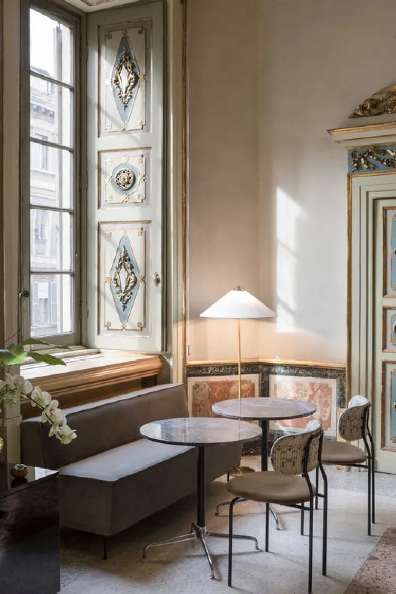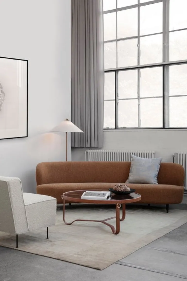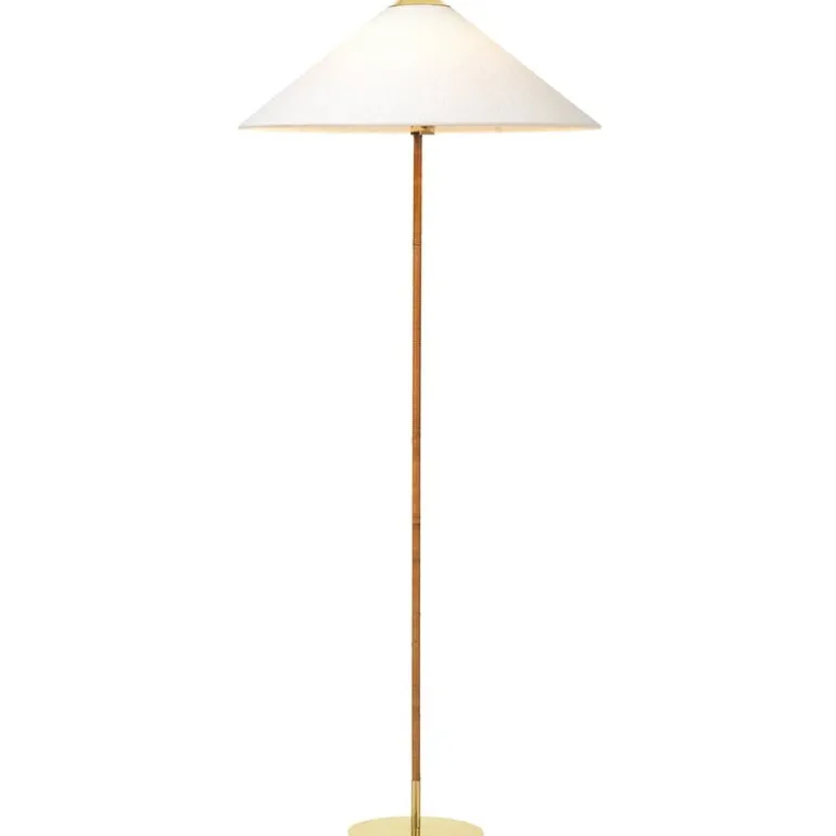 Den finska belysningsdesignern Paavo Tynell skapade golvlampan 9602 för hotellet Aulanko i Tavastehus, Finland år 1935. Lampan kännetecknas av en bred skärm som liknar en traditionell kinesisk hatt och en smal, rottingklädd fot som kontrasteras av glänsande mässing i basen och på toppen av lampskärmen. 9602-lampan är ett utmärkt exempel på Tynells förmåga att förvandla belysning till konst och kombinera olika material sömlöst. Armaturen är en del av Paavo Tynell-kollektionen som släpptes 2018 av det danska designmärket Gubi.
