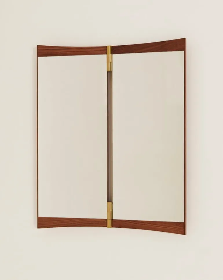 GUBI:s väggspegel Vanity har både inspirerats och fått sitt namn av spegelborden från 1600-talet. Sminkborden från den här tiden var försedda med spegelpaneler så att personen som satt vid bordet kunde spegla sig från olika vinklar samtidigt. Vad väggspegeln Vanity beträffar så har själva bordet tagits bort, men grundtanken förblir densamma: i de valnötsinramade spegelglasen, som sitter ihop med eleganta gångjärn i mässing, kan betraktaren beundra sin egen spegelbild ur olika vinklar samtidigt.