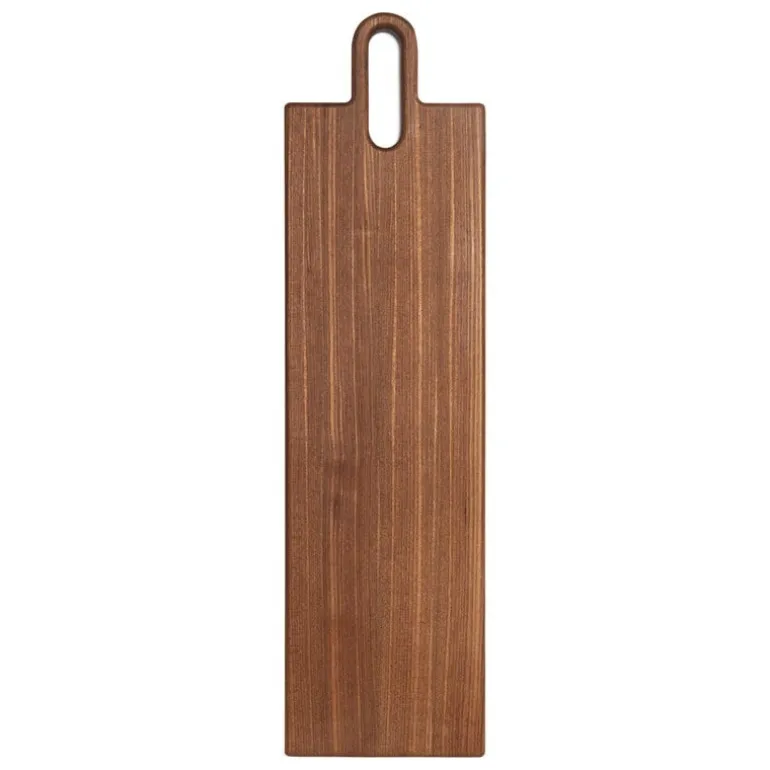 Den handgjorda, antibakteriella skärbrädan är ytbehandlad med paraffinolja, vilket gör den säker att skära bröd eller grönsaker på. Varje skärbräda är unik med individuella trästrukturer och nyanser.