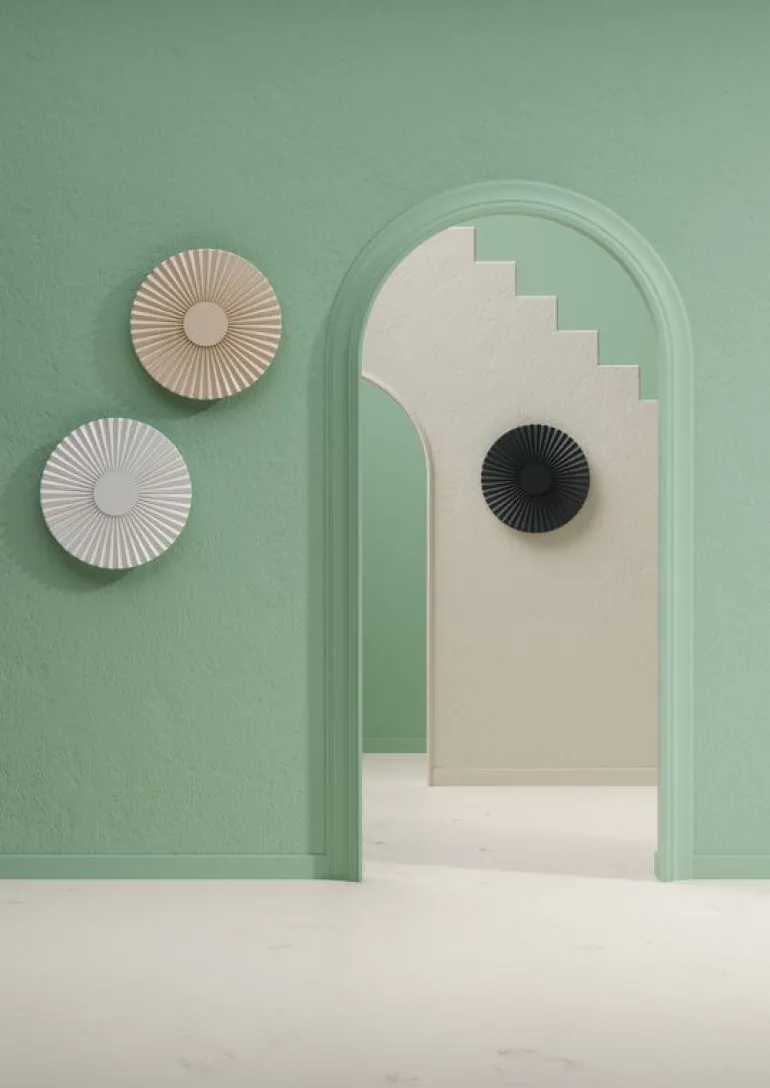 Vägglampan Carmen från Hartô, formgiven av PaulinePlusLuis Studio, påminner om en virvlande kjol på en roterande dansare. Den eleganta vägglampan består av en lysande skiva under genomskinligt plexiglas med en plisserad tygkrans runt omkring. De harmoniska färgerna framhäver Carmens graciösa form och blir till ett vackert blickfång i alla inredningar. Carmen finns i flera storlekar och färger, det går fint att hänga lamporna tillsammans i kreativa och unika kluster.