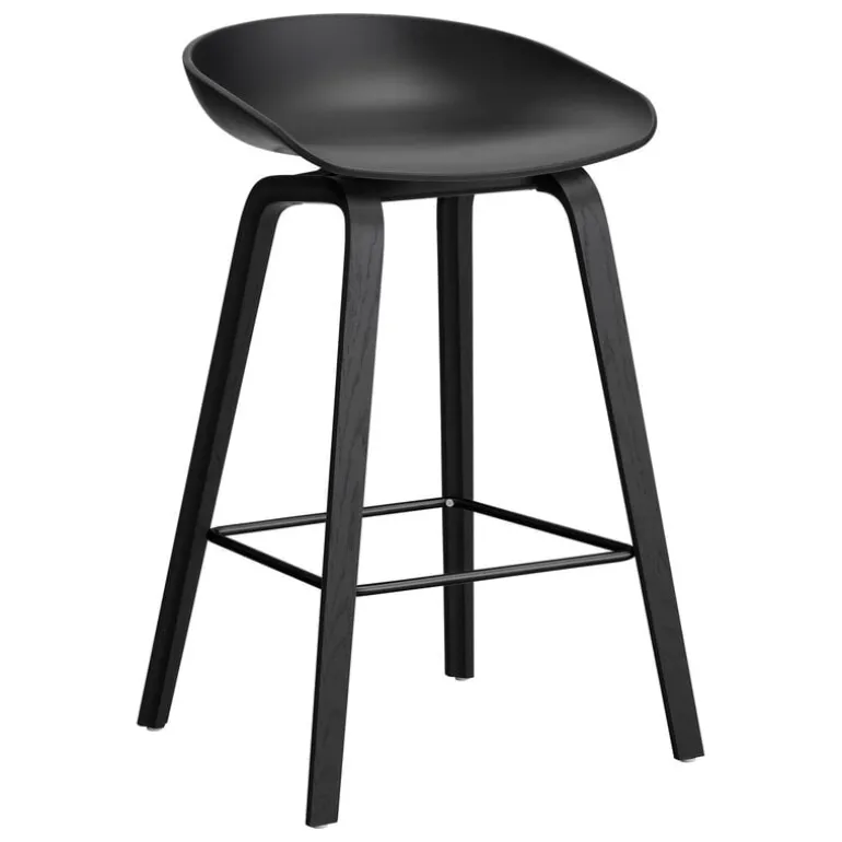 Barstolen About A Stool AAS32 ingår i HAY:s About A-kollektion med stilrena stolar som är enkla att kombinera. Kollektionen är skapad i nära samarbete med formgivaren Hee Welling. Barstolens strömlinjeformade sits är gjord av återvunnen polypropen, och dess träram är gjord av ek och lackerad med en miljövänlig, vattenbaserad lack. År 2023 uppdaterade HAY hela About A-kollektionen med skal av 100 % plast som återvunnits efter konsumtion.