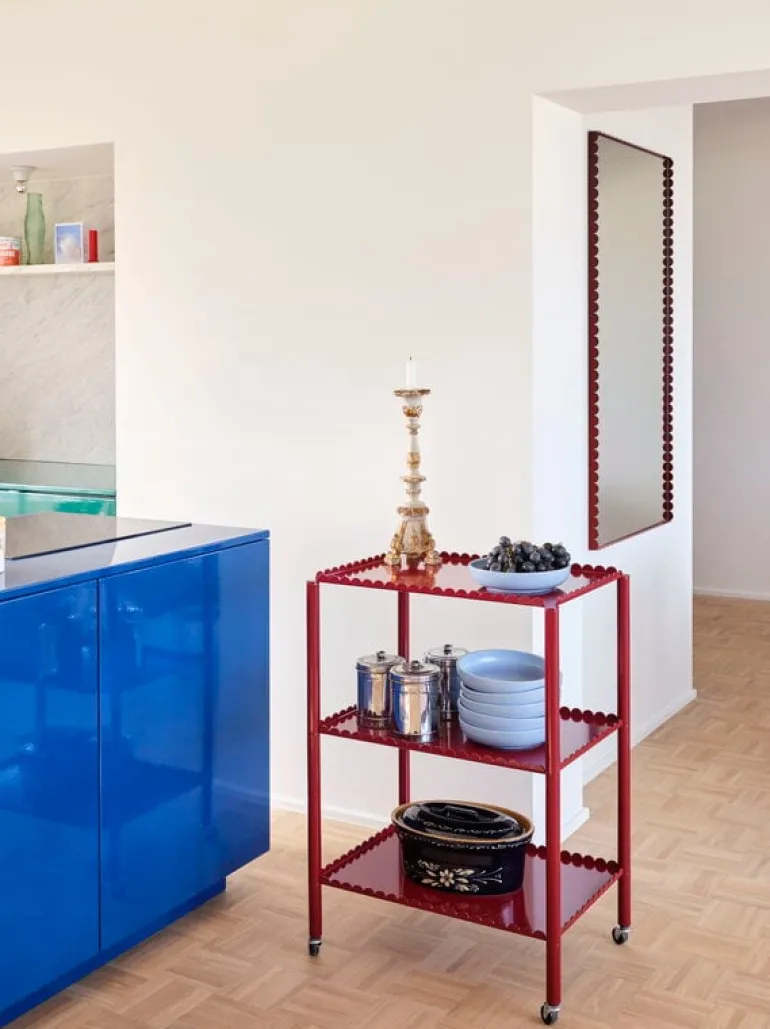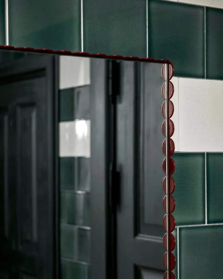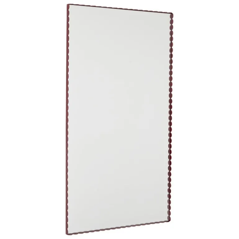 Väggspegeln Arcs är dekorerad med diskret vinröda ramar i en design som du kanske redan känner igen från ljusstakar, vaser och lampor ur HAY:s Arcs-kollektion. Arcs-serien, som formgivits av Muller Van Severen, är baserad på enkla ovala former: när de förenas skapar delarna fängslande siluetter, där mjuka och raka linjer möts. Föremålen i kollektionen finns i både målat och reflekterande utförande, så att du kan skapa en livfull, men följdriktig helhet genom att blanda olika nyanser och ytbehandlingar tillsammans.