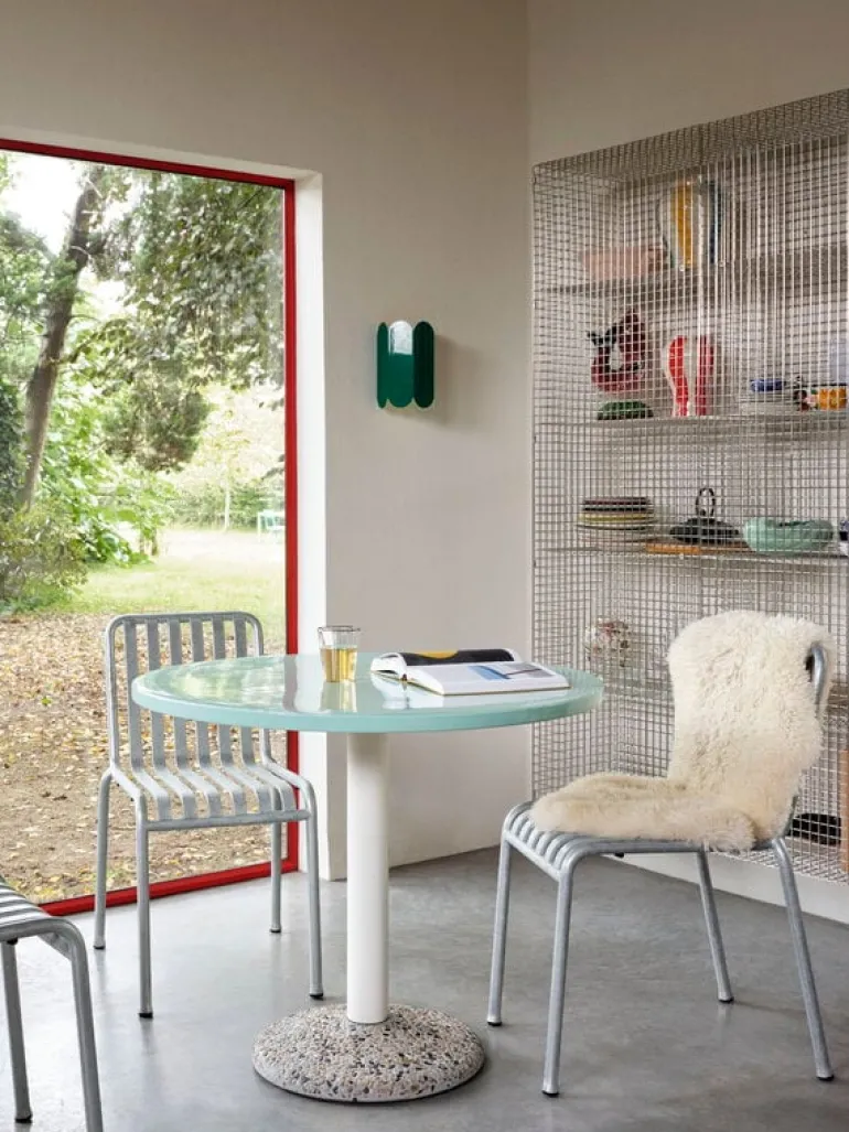 HAY:s Arcs väggfackla är en atmosfärisk blickfångare som skapar ett mjukt ljusspel och skuggor i rummet. Den iögonfallande och grafiska väggmonterade lampan är tillverkad av böjd plåtstål och har en högglansig sprayfärg.