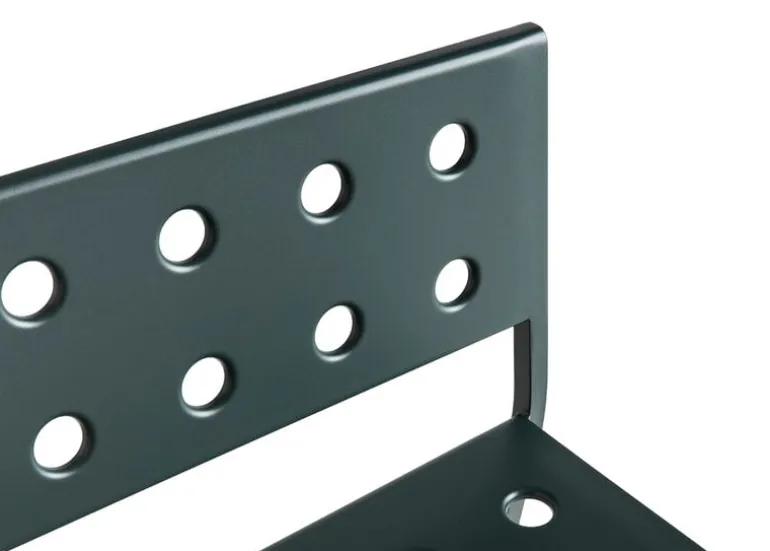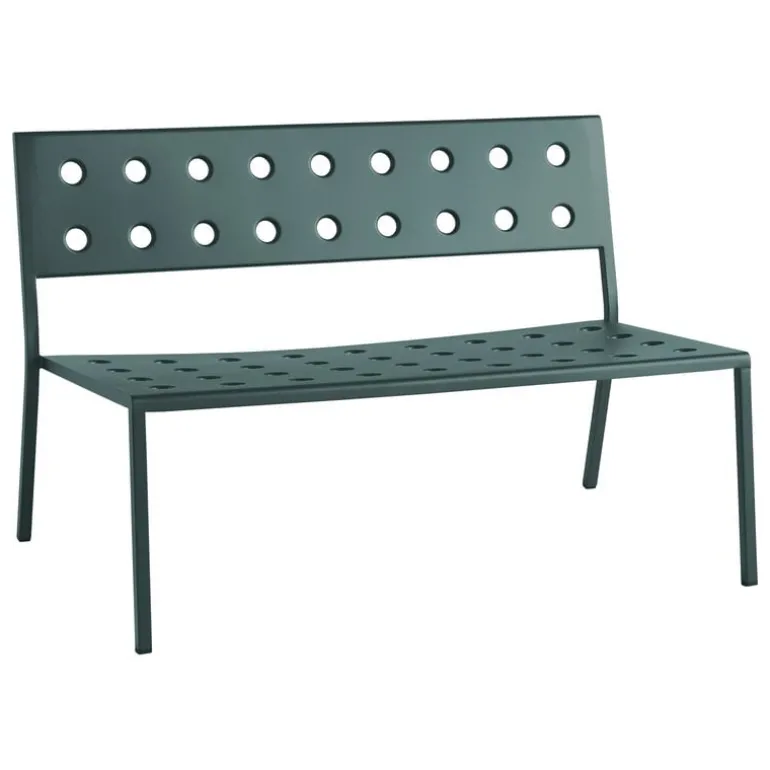 Bänken Balcony Lounge från HAY ingår i en fiffig kollektion med utemöbler som formgivits av bröderna Bouroullec. Balconys eleganta utomhusbänkar och utomhusstolar är tillverkade av tunn stålplåt och är därför väldigt lätta och enkla att flytta – ett perfekt komplement till trädgården, altanen, terrassen eller balkongen. De runda, stansade hålen i stålplåten tjänar flera syften – de tonar ner och ger karaktär åt den geometriska designen, medan regnvattnet kan sippra ner genom bänkytan samtidigt som möbelns struktur också blir starkare. Balcony-kollektionen har behandlats med en väderbeständig beläggning och möblerna är därför precis så lättskötta som de ser ut.