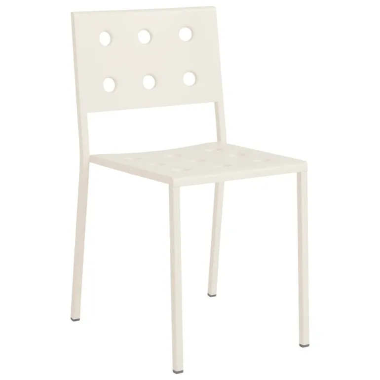 Matstolen Balcony från HAY ingår i en fiffig kollektion med utemöbler som formgivits av bröderna Bouroullec. Balconys eleganta utomhusstolar och utomhusbänkar är tillverkade av tunn stålplåt och är därför väldigt lätta och enkla att flytta – ett perfekt komplement till trädgården, altanen, terrassen eller balkongen. De runda, stansade hålen i stålplåten tjänar flera syften – de tonar ner och ger karaktär åt den geometriska designen, medan regnvattnet kan sippra ner från stolsytan samtidigt som möbelns struktur också blir starkare. Balcony-kollektionen har behandlats med en väderbeständig beläggning och möblerna är därför precis så lättskötta som de ser ut.