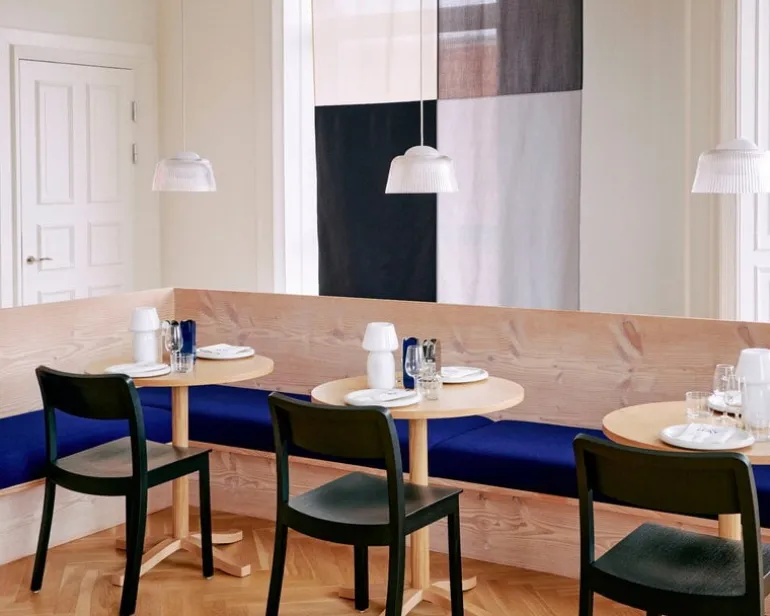 Pendellampan Brim från HAY är en charmig blandning av tradition och modern belysningsteknik. Den skapar ett mjukt sken som filtreras genom två lager: lampan är dold inuti ett tunt, opalvitt plasthölje, medan det yttre lagret består av en räfflad glasskärm inspirerad av gamla glaslampor, vilket ger ljuset en mjuk och inbjudande kvalitet.