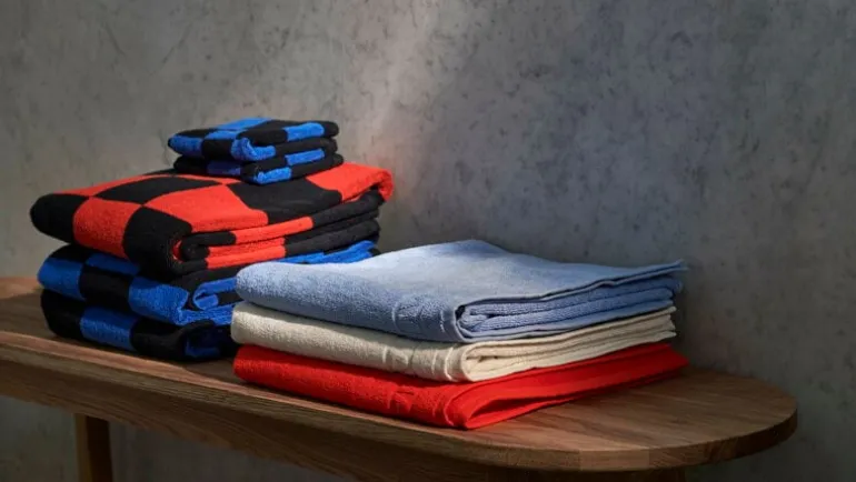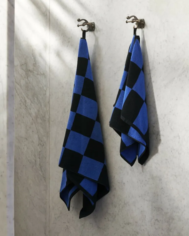 Handduken Check från HAY är prydd med ett klassiskt schackrutigt mönster som livar upp badrummet med sina pigga vibbar och sin påfallande geometriska form. Handduken Check är tillverkad av certifierad bomull, och texturen i mjuk frotté känns behaglig mot huden. På lång- och kortsidan av badlakanet finns öglor för upphängning. De olika färgerna och storlekarna i Check-kollektionen kan med fördel matchas på olika sätt – skapa ett käckt schackbräde i badrummet med hjälp av handdukar i olika nyanser!