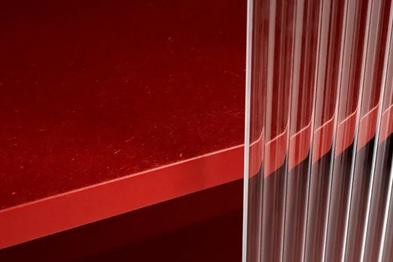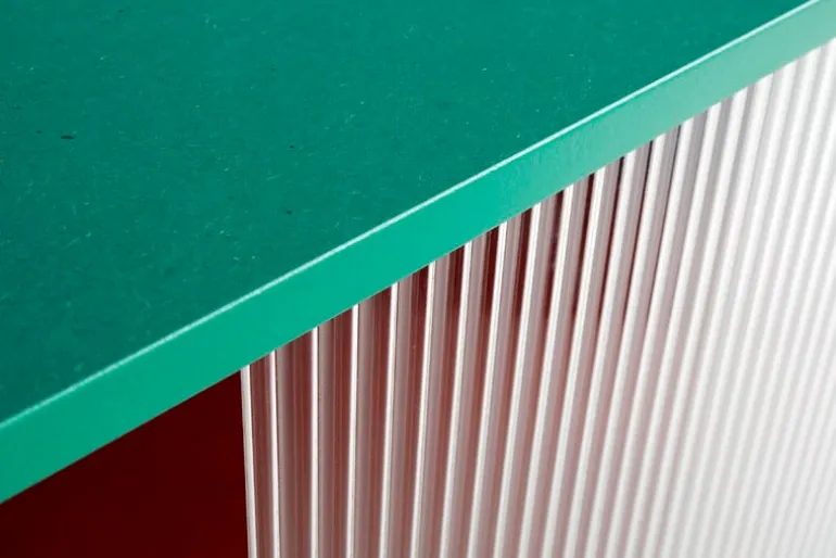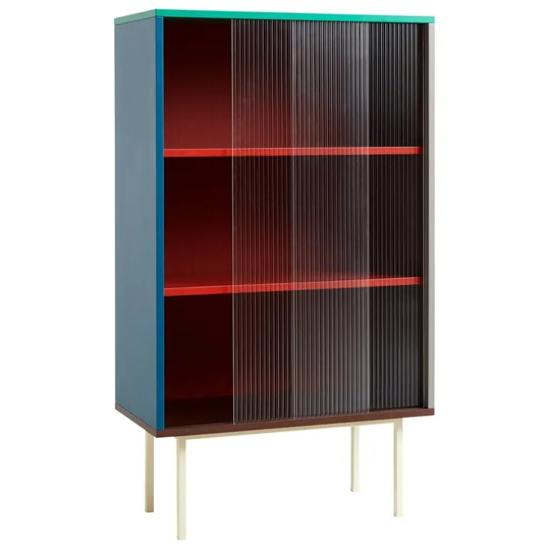 HAY:s Colour Cabinet kombinerar en elegant och funktionell design med starka, dynamiska färger. Skåpet är tillverkat av robusta Valchromat-paneler av certifierat trä, och dess yta livas upp av små träfibrer. Stående på smala stålbens kan detta vitrinskåp användas, till exempel, för att förvara böcker, porslin och kontorsmaterial i vilket rum du vill. Designen kompletteras av skjutdörrar i glas med en räfflad textur.