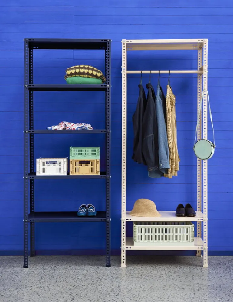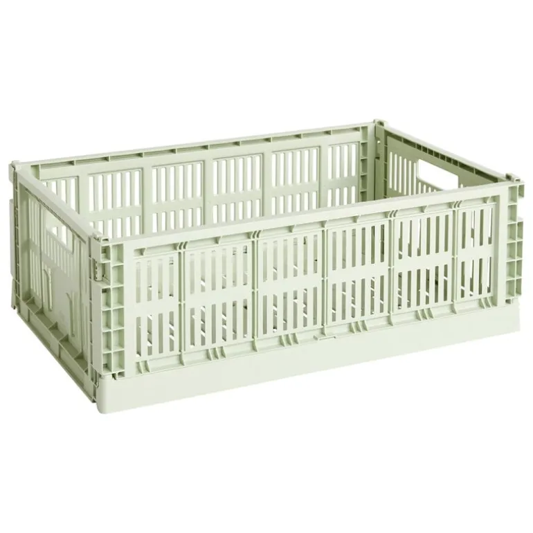Colour Crates från HAY kännetecknas av funktionell design, industriell estetik och ett brett utbud av läckra färger. De kompakta, stapelbara behållarna är utmärkta för att förvara alla typer av föremål, från leksaker till kontorsmaterial, och deras luftiga, perforerade design gör dem perfekta även för mat och badrumstillbehör.