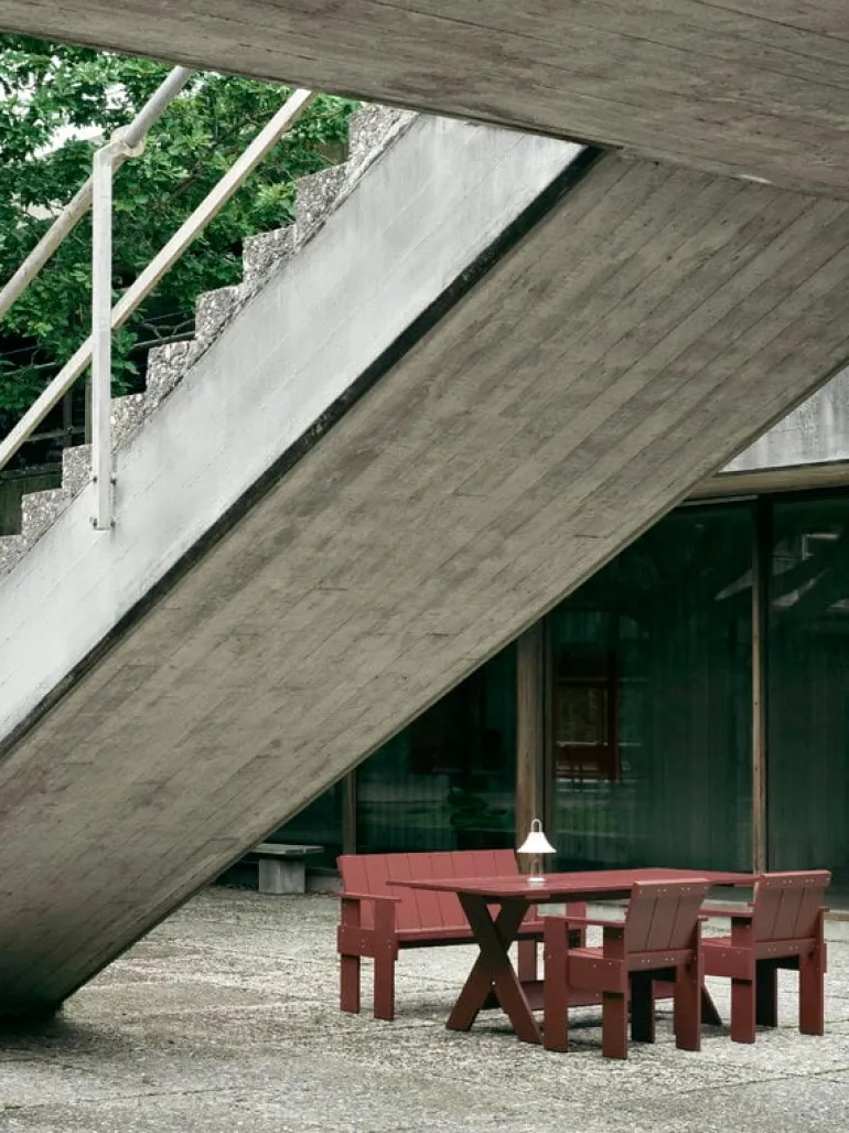 Altanbänken Crate är baserad på Crate-stolen, som ursprungligen skapades av den nederländske arkitekten och formgivaren Gerrit Thomas Rietveld år 1934. På den tiden tillverkades stolen av överblivna fraktlådor i trä, men i Rietveld Originals och HAY:s nytolkning används istället lackad furu. Bänken Crate har ytbehandlats med en väderbeständig beläggning, som gör att den passar perfekt i olika utemiljöer, som på terrassen, i trädgården och på balkongen.