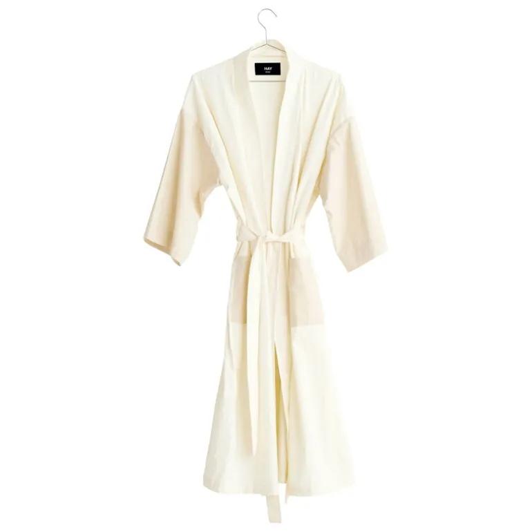 HAY:s Duo morgonrock kännetecknas av en mjuk och lätt bomullstextur som gör den idealisk för att slappa runt i huset eller koppla av vid stranden eller poolen. Morgonrocken Duo, som är tillverkad av certifierad bomull, har vida ärmar, sidofickor och ett knytbälte. Namnet på Duo morgonrocken hänvisar till dess livfulla färgschema: morgonrocken är färgad i två nyanser av samma färg.