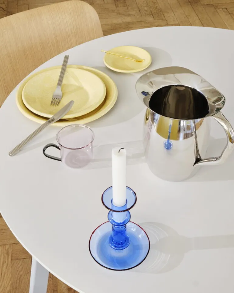 Flare från HAY är en modern tolkning av den klassiska ljusstaken: de klara färgerna och den transparenta strukturen gör Flare till ett unikt och fräscht inslag till dukningen och interiören. Dessutom bidrar kontrastkanterna till utseendets lekfullhet. Ljusstaken är 14 cm hög och tillverkad i tåligt borosilikatglas.