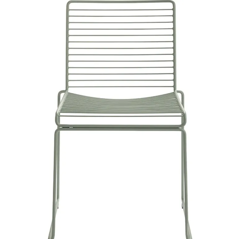 Hee matstol från HAY har en grafisk och stilren design med en lätt metallstruktur som ser ut att vara ritad i luften. Den är tillverkad av elförzinkad ståltråd med en tålig pulverlackering, vilket gör Hee matstol idealisk för både inne- och utemiljöer.
