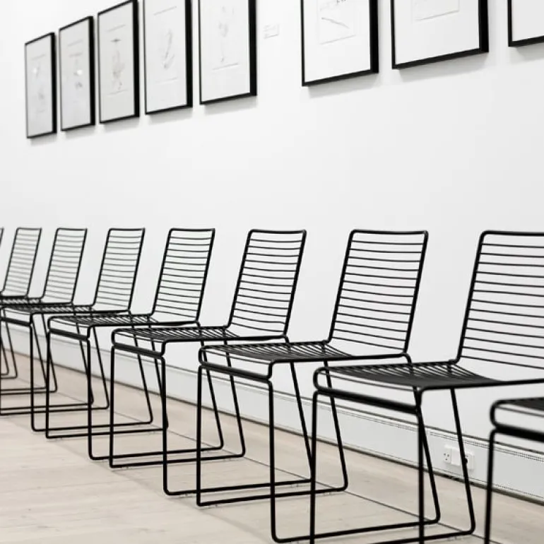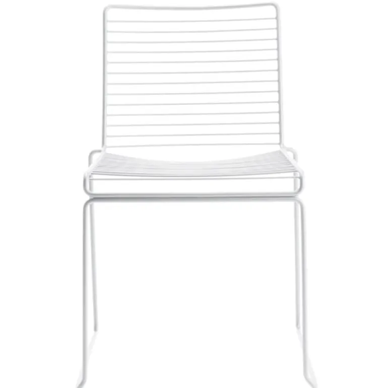 Hee matstol från HAY har en grafisk och stilren design med en lätt metallstruktur som ser ut att vara ritad i luften. Den är tillverkad av elförzinkad ståltråd med en tålig pulverlackering, vilket gör Hee matstol idealisk för både inne- och utemiljöer.