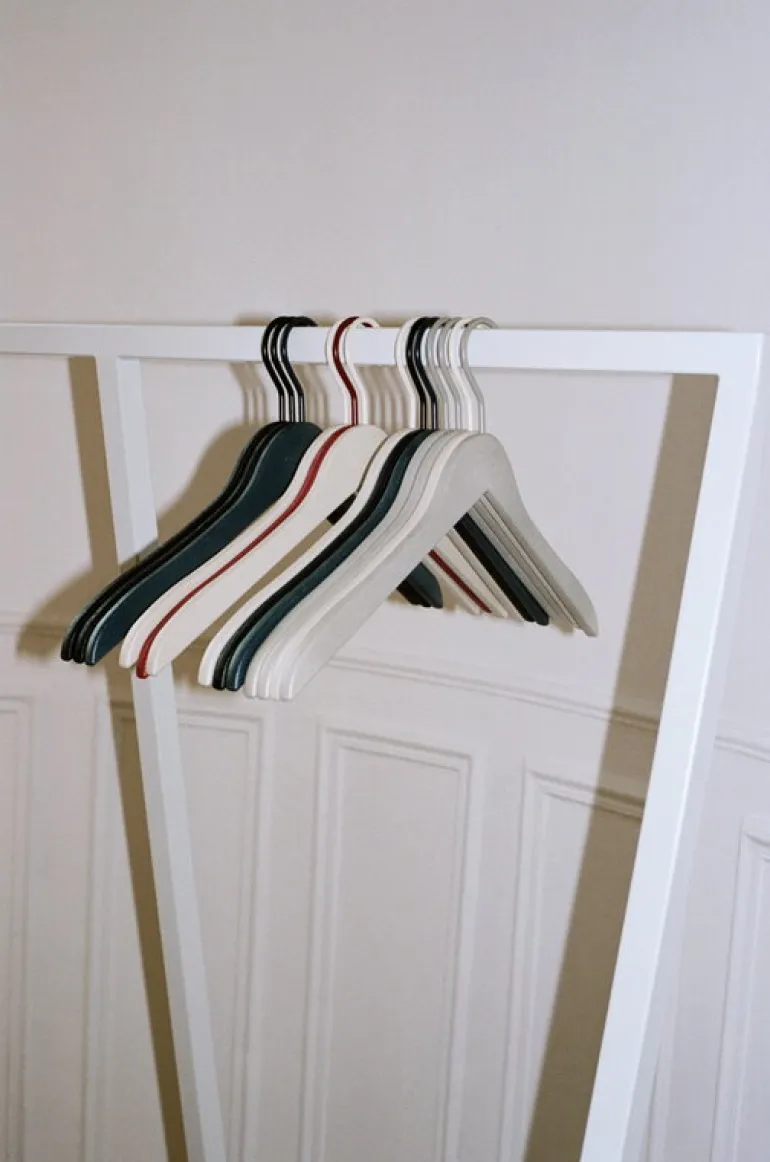 HAY:s klädhängare är en lätt och elegant krämig hängare, perfekt för både hallens klädställ och sovrummets garderob. Tillverkad av lätt återvunnen plast, kommer hängaren inte att skada kläderna som hängs på den. Paketet innehåller fyra hängare.