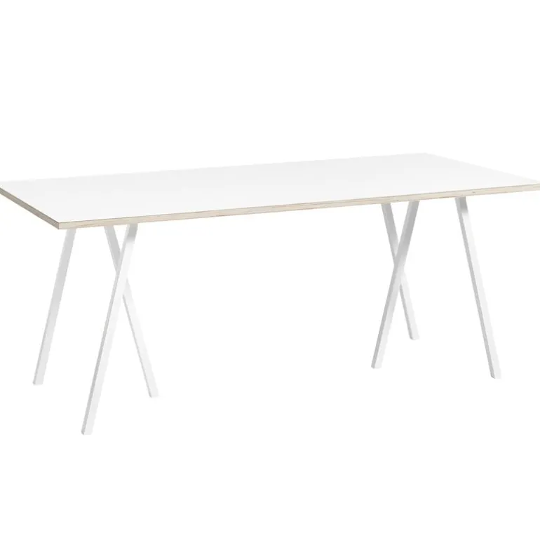 Bordet Loop Stand från Hay ingår i den minimalistiska, men stilistiskt framträdande möbelkollektionen som designats av Leif Jørgensen. Loop Stand-sortimentet är byggt på en modern, trebent version av det klassiska bockstödet – Loop Stand-bordet består av en laminerad bordsskiva med snedställda bockben. Leif Jørgensen designade ursprungligen Loop Stand-kollektionen för Storm, en livsstils- och modebutik i Köpenhamn. Kollektionens enkla, eleganta design har funnit sin plats i otaliga hem, kontor och offentliga miljöer över hela världen.