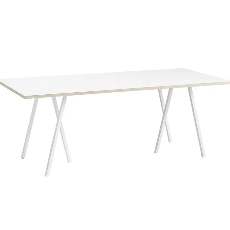 Bordet Loop Stand från Hay ingår i den minimalistiska men stilistiskt framträdande möbelkollektionen som designats av Leif Jørgensen. Loop Stand-sortimentet är byggt på en modern, trebent version av det klassiska bockstödet – Loop Stand-bordet består av en laminerad bordsskiva med snedställda bockben. Leif Jørgensen designade ursprungligen Loop Stand-kollektionen för Storm, en livsstils- och modebutik i Köpenhamn. Kollektionens enkla, eleganta design har funnit sin plats i otaliga hem, kontor och offentliga miljöer över hela världen.