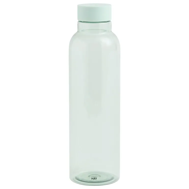 Vattenflaskan Miz är ett perfekt exempel på formgivaren Naoto Fukasawas inställning till att skapa ”övernormala” vardagsprodukter, som han omformar på ett överraskande och fascinerande sätt. Fukasawa betonar att syftet med ett föremål ska vara omedelbart uppenbart, och detta stämmer verkligen in på vattenflaskan Miz som han designade för det danska märket HAY. Flaskans smala, smäckra form ligger bekvämt i handen, och dess genomskinliga yta avslöjar diskret vätskan inuti. Miz är tillverkad av tålig, återvunnen PET och har en kork som matchar flaskans färg, vilket fulländar dess eleganta utseende.