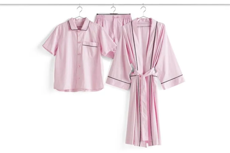 HAY:s morgonrock Outline förenar klassisk stil med modern känsla. Morgonrocken har formgivits av Tilde Bjerregaard och är tillverkad av certifierad, ekologisk bomull som känns mjuk och behaglig mot sömntutans hud. Den är gjord i universalstorlek och den ljusrosa färgen med de mörka detaljerna är ett uppiggande inslag även under de morgnar du känner dig som tröttast.