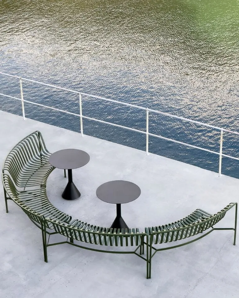 Bordet Palissade Cone, som har konformade ben i kombination med en tunn bordsskiva i stål, är ett stilistiskt framträdande och multifunktionellt tillskott i HAY:s utemöbelkollektion. Palissade utemöbler har en kraftfull, grafisk design som består av enkla stålrör och lameller.