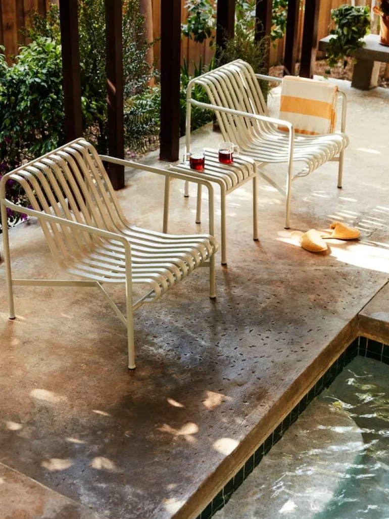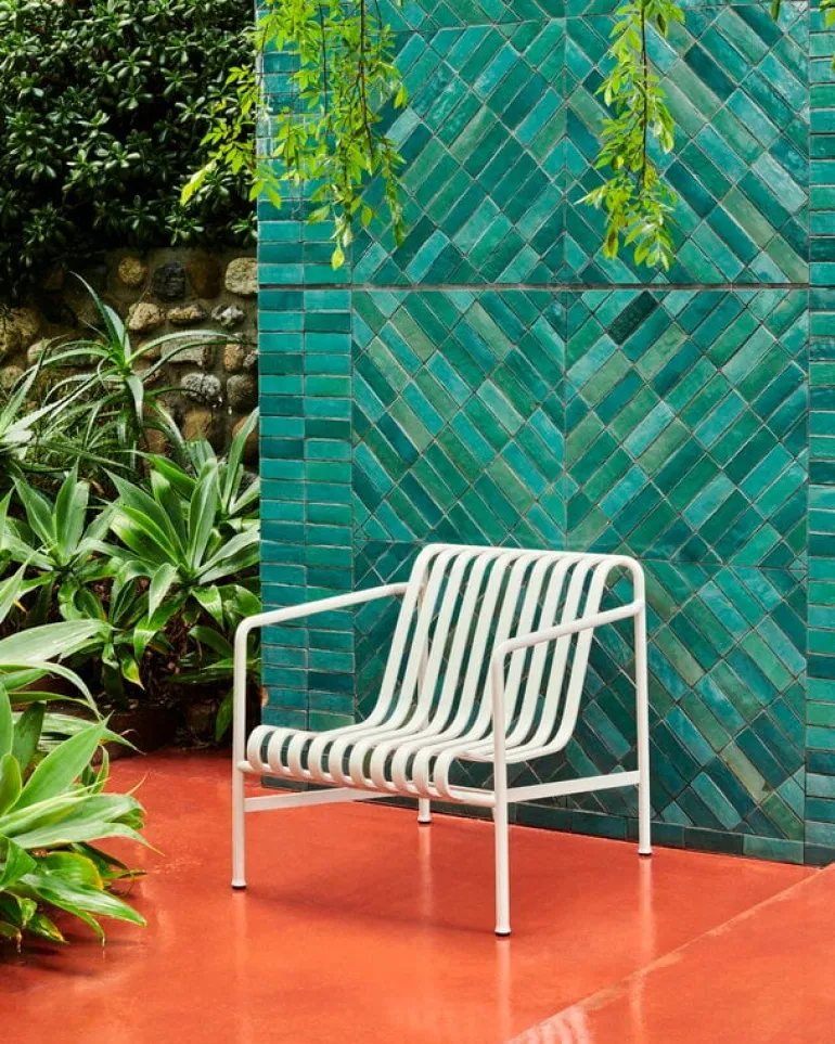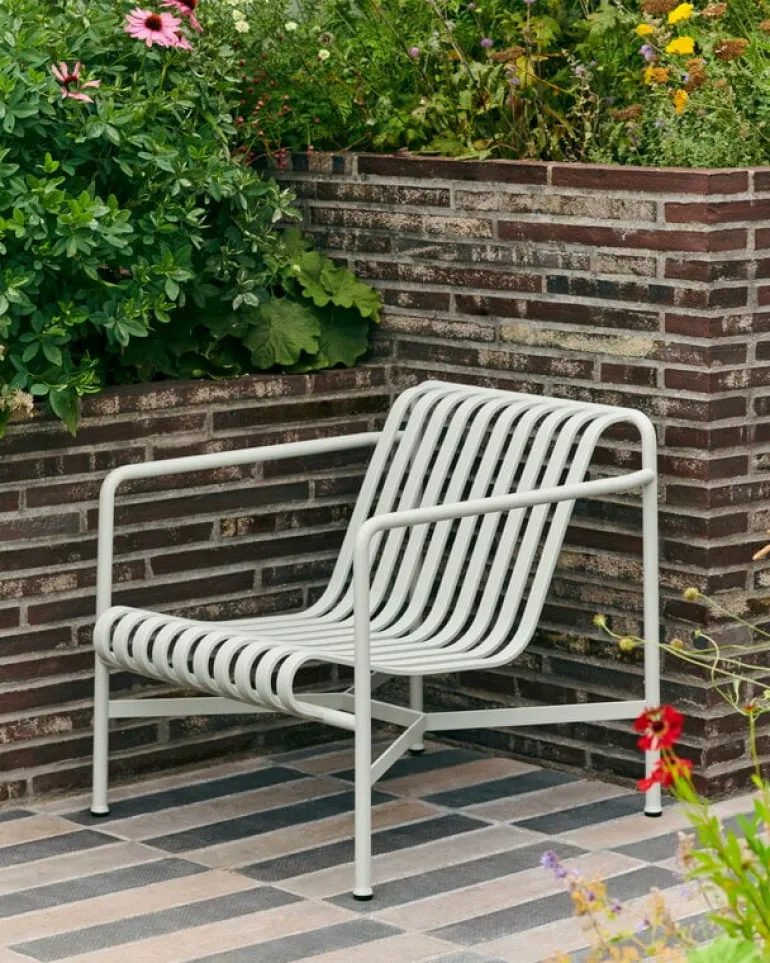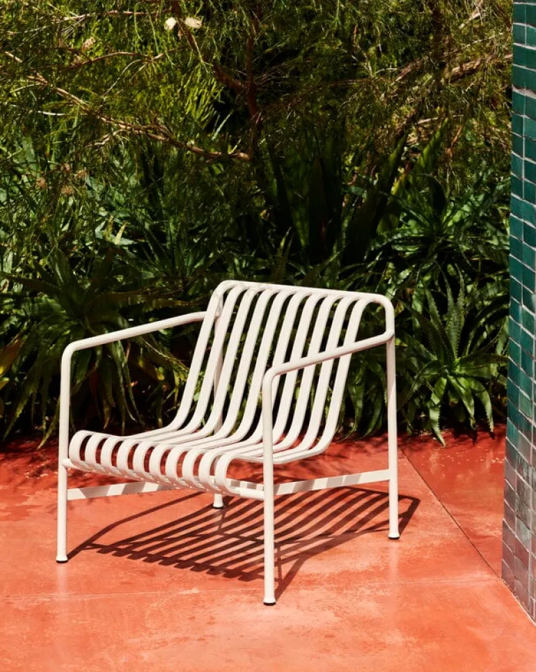 Den eleganta men ändå robusta Palissade-fåtöljen är medlem i Hays mångsidiga kollektion av utemöbler. Palissade utemöbler har en kraftfull, grafisk design som består av enkla stålrör och lameller. Ronan och Erwan Bouroullec arbetade med kollektionen i två år och skapade en kollektion med enkla, välavvägda möbler som lämpar sig väl för terrasser, balkonger, trädgårdar, kaféer och offentliga utrymmen. Palissade stolar, bord och bänkar är robusta men eleganta, och perfekta för utomhusbruk, eftersom vind och vatten kommer att passera genom den galvaniserade stålramen. Palissade-möblerna är gjorda för att åldras vackert, och paletten med dämpade färger förstärker intrycket av tidlöshet och mångsidighet.