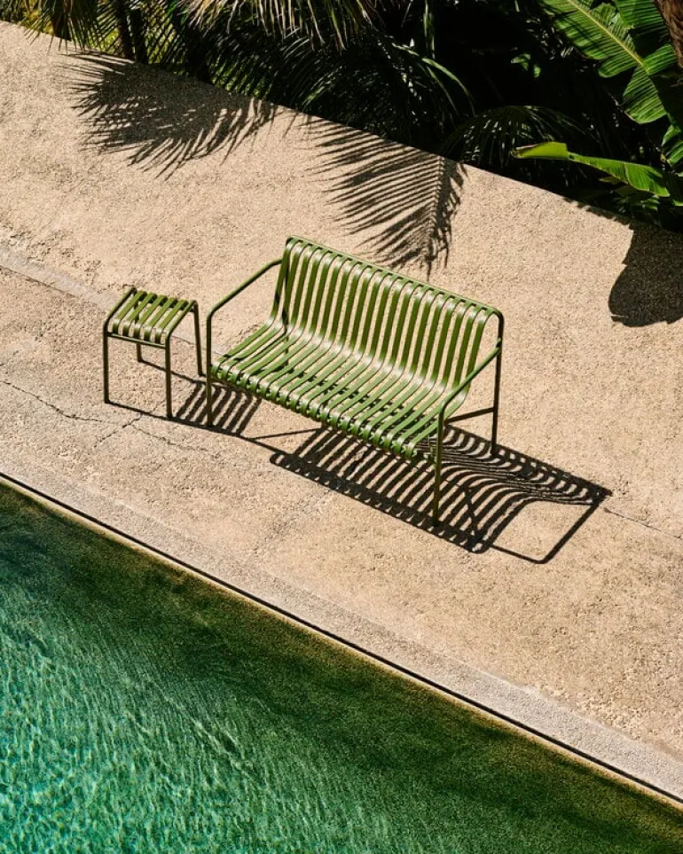 Hays Palissade-utemöbler har en effektfull, grafisk design skapad av enkla stålrör och stållameller. Ronan och Erwan Bouroullec arbetade med kollektionen i två år och skapade 13 välavvägda pjäser som lämpar sig väl för terrasser, balkonger, trädgårdar, kaféer och offentliga utrymmen. Palissade stolar, bord, pallar och bänkar är robusta men eleganta, och perfekta för utomhusbruk, eftersom vind och vatten kan passera genom den galvaniserade stålramen. Palissade-möblerna är gjorda för att åldras vackert, och paletten med dämpade färger förstärker intrycket av tidlöshet och mångsidighet.
