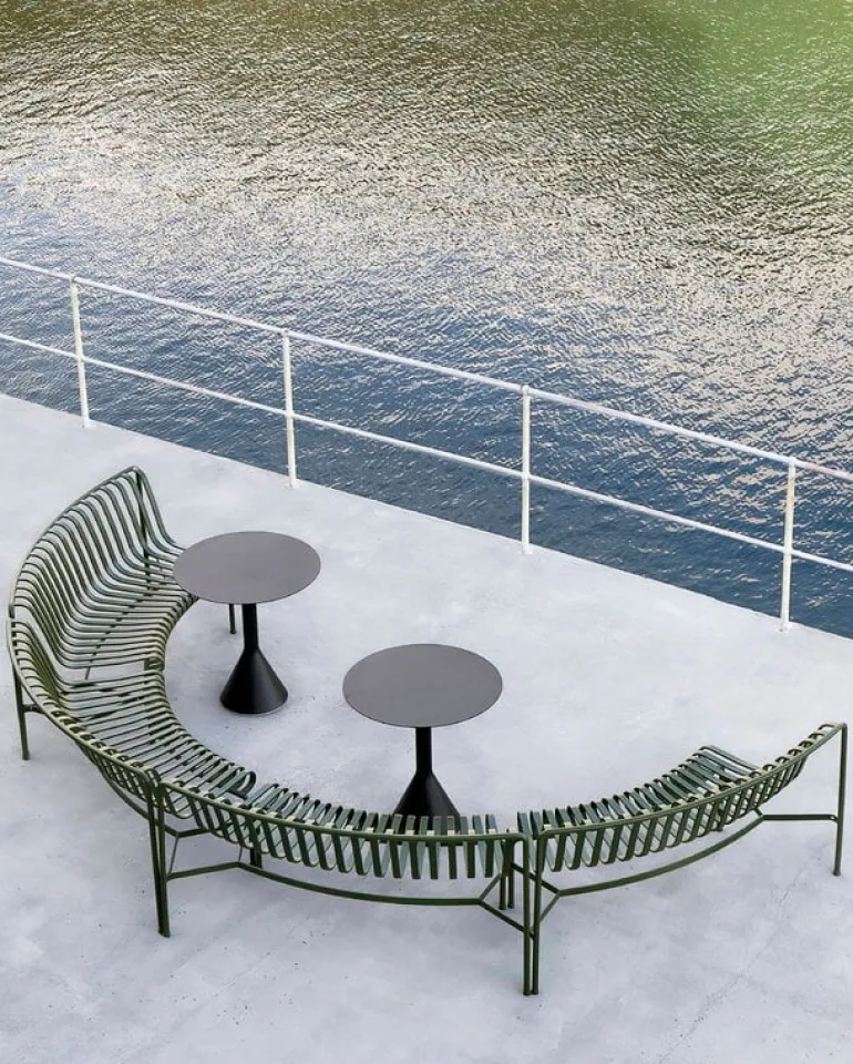Palissade utemöbler har en stark, grafisk design som består av enkla stålrör och lameller. Ronan och Erwan Bouroullec har skapat en rad enkla, balanserade delar som passar bra för terrasser, balkonger, trädgårdar, kaféer och offentliga platser. Palissade-stolarna, borden och bänkarna är robusta men eleganta, och perfekta för utomhusbruk, eftersom vind och vatten passerar genom den galvaniserade stålramen. Palissade-möblerna är designade för att åldras väl och dess dämpade färgpalett bidrar till det tidlösa och mångsidiga utseendet.