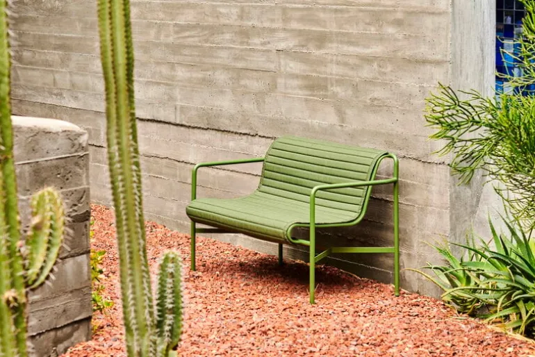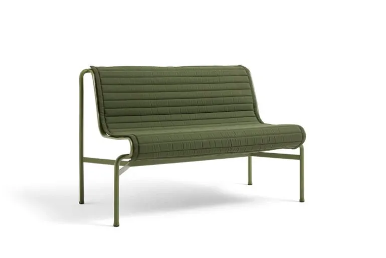 Den här Quilted-dynan passar till Hays Palissade-bänk. Den vadderade dynan är klädd i ett vattentåligt markismaterial och kan sättas fast på sitsen med hjälp av snören och remmar. Dessutom kan banden och snörena användas till att hålla ihop den hoprullade dynan när den inte används.