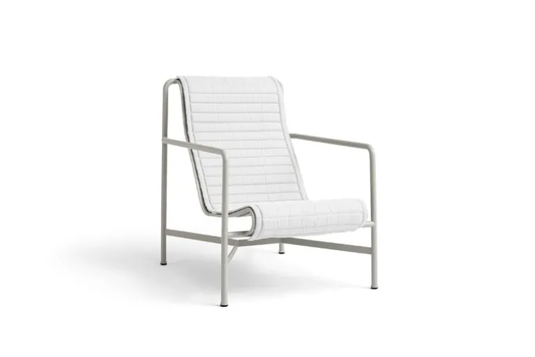 Den här Quilted-dynan passar till Hays höga Palissade-fåtölj. Den vadderade dynan är klädd i ett vattentåligt markismaterial och kan sättas fast på sitsen med hjälp av snören och remmar. Dessutom kan banden och snörena användas till att hålla ihop den hoprullade dynan när den inte används.