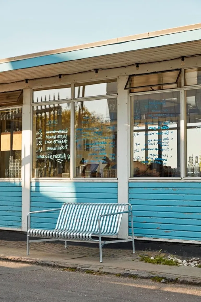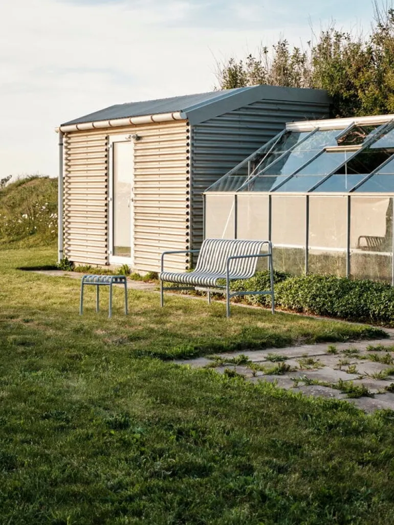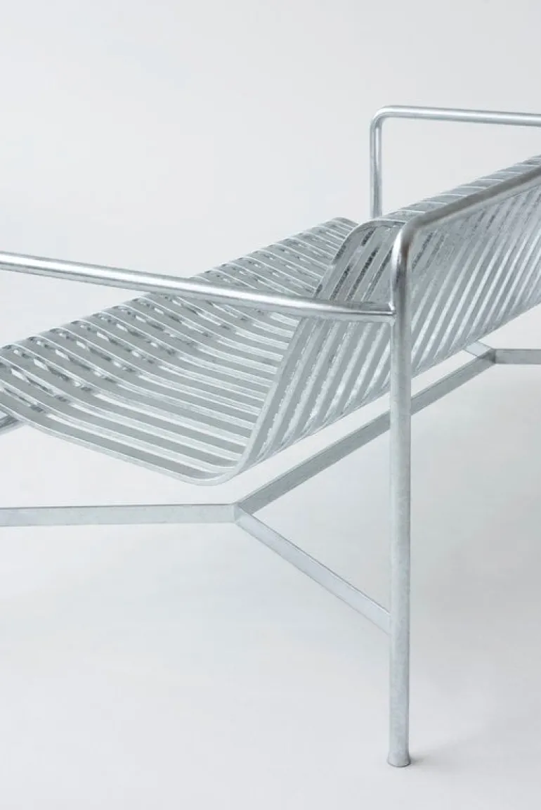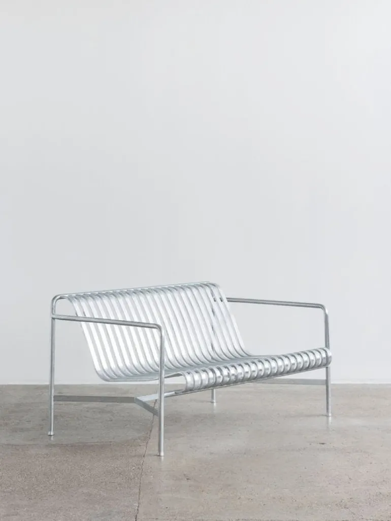 Den eleganta men ändå robusta Palissade-soffan är medlem i Hays mångsidiga kollektion av utemöbler. Palissade utemöbler har en kraftfull, grafisk design som består av enkla stålrör och lameller. Ronan och Erwan Bouroullec arbetade med kollektionen i två år och skapade en kollektion med enkla, välavvägda möbler som lämpar sig väl för terrasser, balkonger, trädgårdar, kaféer och offentliga utrymmen. Palissade stolar, bord och bänkar är robusta men eleganta, och perfekta för utomhusbruk, eftersom vind och vatten kommer att passera genom den galvaniserade stålramen. Palissade-möblerna är gjorda för att åldras vackert, och paletten med dämpade färger förstärker intrycket av tidlöshet och mångsidighet.