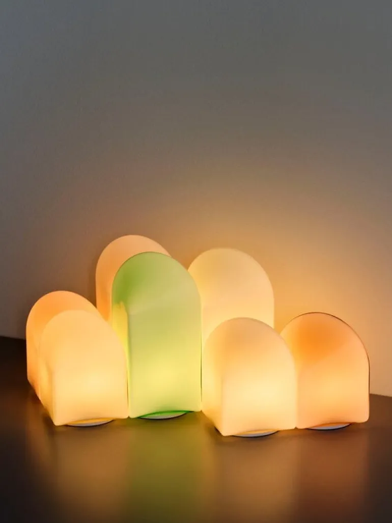 HAY:s lampa Parade Portable förtrollar med sin vackra, grafiska form som gör den till en källa av ljus såväl som ett skulpturalt föremål. Bordslampan, som designats av Viola Heyn-Johnsen och Jonas Trampedach, är tillverkad av glansigt, opakt färgat glas. Lampans form leker inte bara med det mjuka skenet som kommer utifrån, utan även med det omgivande ljuset i rummet, som reflekteras på dess yta på ett fascinerande sätt och ger Parade ett dynamiskt utseende som skiftar beroende på var den placeras. Och placeringen är flexibel, eftersom den bärbara Parade enkelt kan flyttas från en plats till en annan. Tack vare sin IP44-klassning är lampan även lämplig för utomhusbruk.