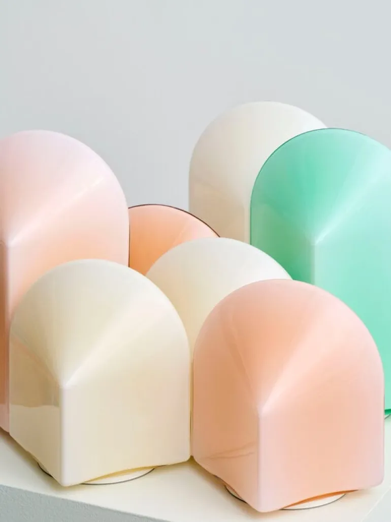 HAY:s lampa Parade Portable förtrollar med sin vackra, grafiska form som gör den till en källa av ljus såväl som ett skulpturalt föremål. Bordslampan, som designats av Viola Heyn-Johnsen och Jonas Trampedach, är tillverkad av glansigt, opakt färgat glas. Lampans form leker inte bara med det mjuka skenet som kommer utifrån, utan även med det omgivande ljuset i rummet, som reflekteras på dess yta på ett fascinerande sätt och ger Parade ett dynamiskt utseende som skiftar beroende på var den placeras. Och placeringen är flexibel, eftersom den bärbara Parade enkelt kan flyttas från en plats till en annan. Tack vare sin IP44-klassning är lampan även lämplig för utomhusbruk.