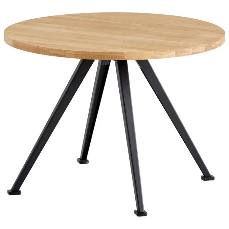 Med sina vinklade stålramar och stadiga bordsskivor i trä, andas Pyramid-kollektionen 1950-talets moderna ståldesign och har behållit sin tidlösa charm. Genom åren har möblerna blivit välkända inslag både i offentliga miljöer och i privata hem. De nyutgivna möblerna från HAY är lackerade med en miljövänlig, vattenbaserad lack.