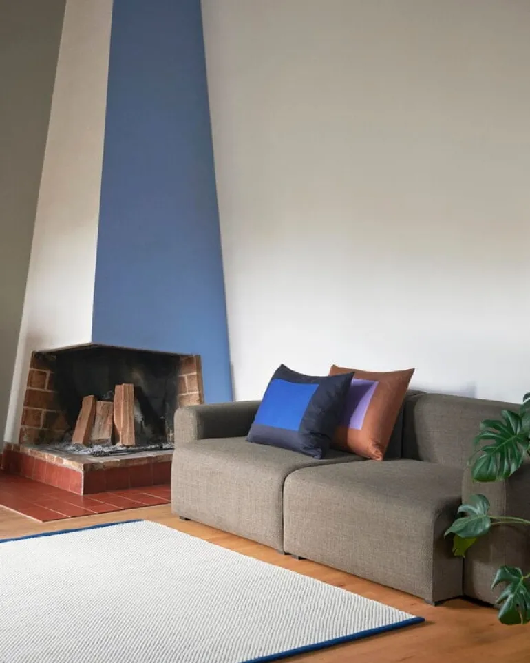 Kudden ingår i kollektionen Ram, skapad av den serbiska formgivaren Ana Kraš. Kollektionen utgörs av textilier där kontrasterande färger lekfullt ställs mot varandra. De vackra färgtonerna ramar inte bara in varandra, utan även rummet – det är ingen slump att kollektionen fått namnet Ram, som också betyder ”ram” på serbiska.