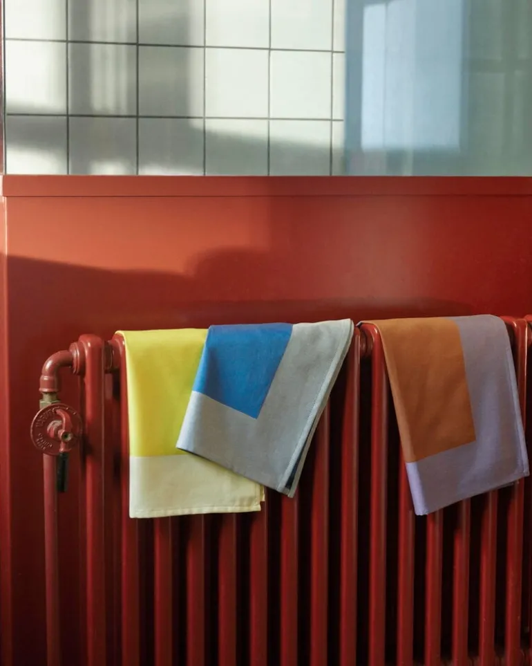 Tygservetten ingår i kollektionen Ram, skapad av den serbiska formgivaren Ana Kraš. Kollektionen utgörs av textilier där kontrasterande färger lekfullt ställs mot varandra. De vackra färgtonerna ramar inte bara in varandra, utan även rummet – det är ingen slump att kollektionen fått namnet Ram, som också betyder ”ram” på serbiska.