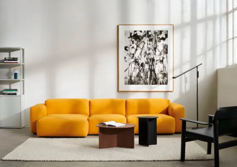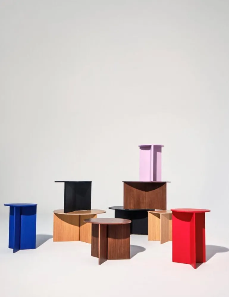 HAY:s XL Slit Wood bord är ett enkelt träkaffebord med en delikat design inspirerad av japansk origamikonst. Det runda bordsskivan stöds av en geometrisk ram som liknar ett vikt papper origami. Använd Slit-borden ensamma, i par eller som vackra kluster bildade av olika färger och former.
