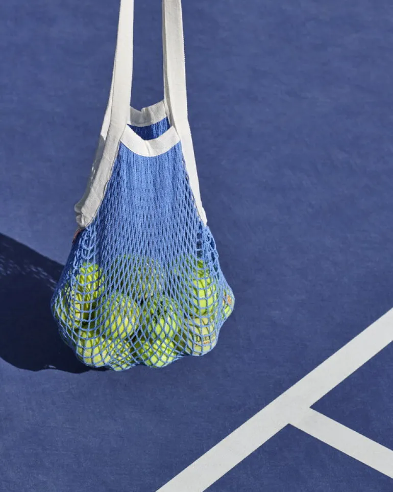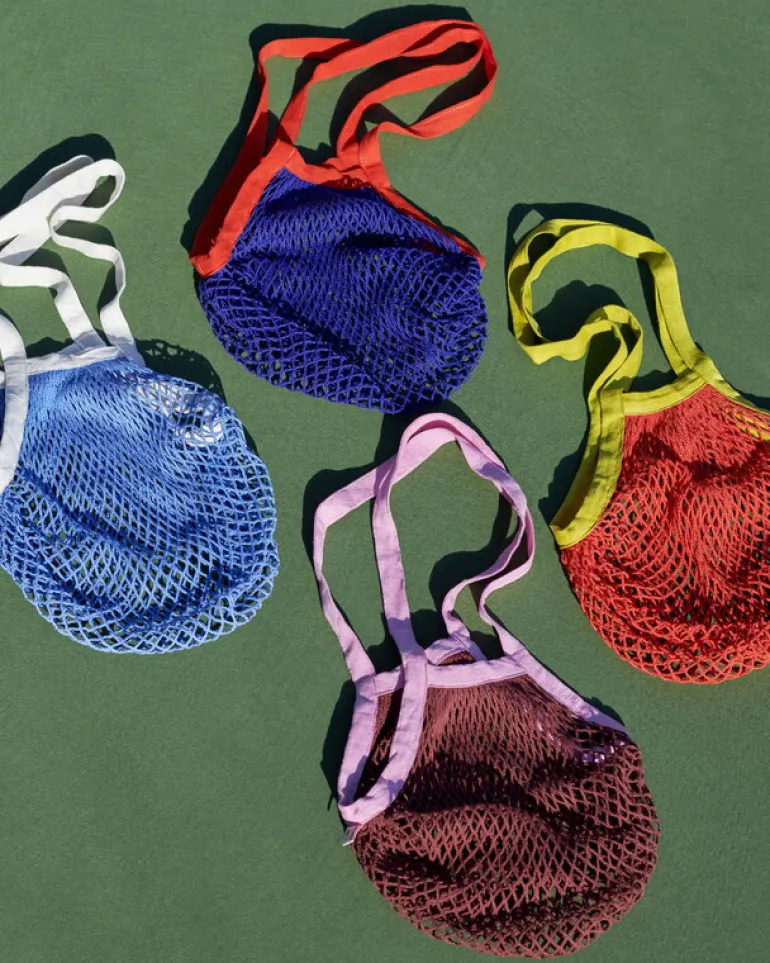 HAY:s Sobremesa nätväska, skapad av den egyptiska kocken och konstnären Laila Gohar, är designad för att göra matinköp och matlagning till en upplevelse. Sobremesa-shopperväskan är tillverkad av återvunnen bomull och polyester och finns i en rad fräscha, livfulla färger.