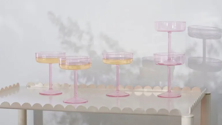 Coupeglasen Tint från HAY gör ett charmigt intryck med sin enkla design och sina snygga färger. Glasen är perfekta till desserter eller goda cocktails och mocktails. Coupeglasen är tillverkade i borosilikatglas som är betydligt mer hållbart än vanligt glas, och de kan även diskas i maskin.