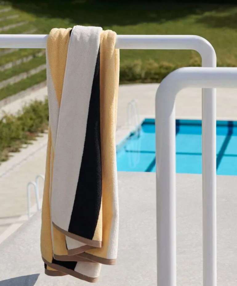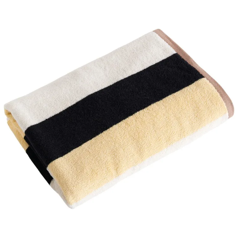 HAY:s Trio badhandduk framkallar bilder av färgglada strandhyddor. De skarpa, geometriska ränderna och de milda nyanserna passar ihop som glass och solsken, och det plyschiga bomullsmaterialet känns mjukt mot huden. Perfekt för en tur till stranden eller badrummet, HAY:s Trio badhandduk har du alltid användning för. Fullända stämningen med HAY:s Trio badrumsmatta.