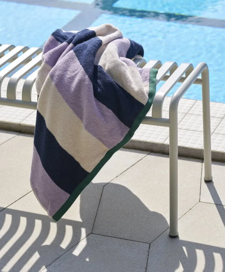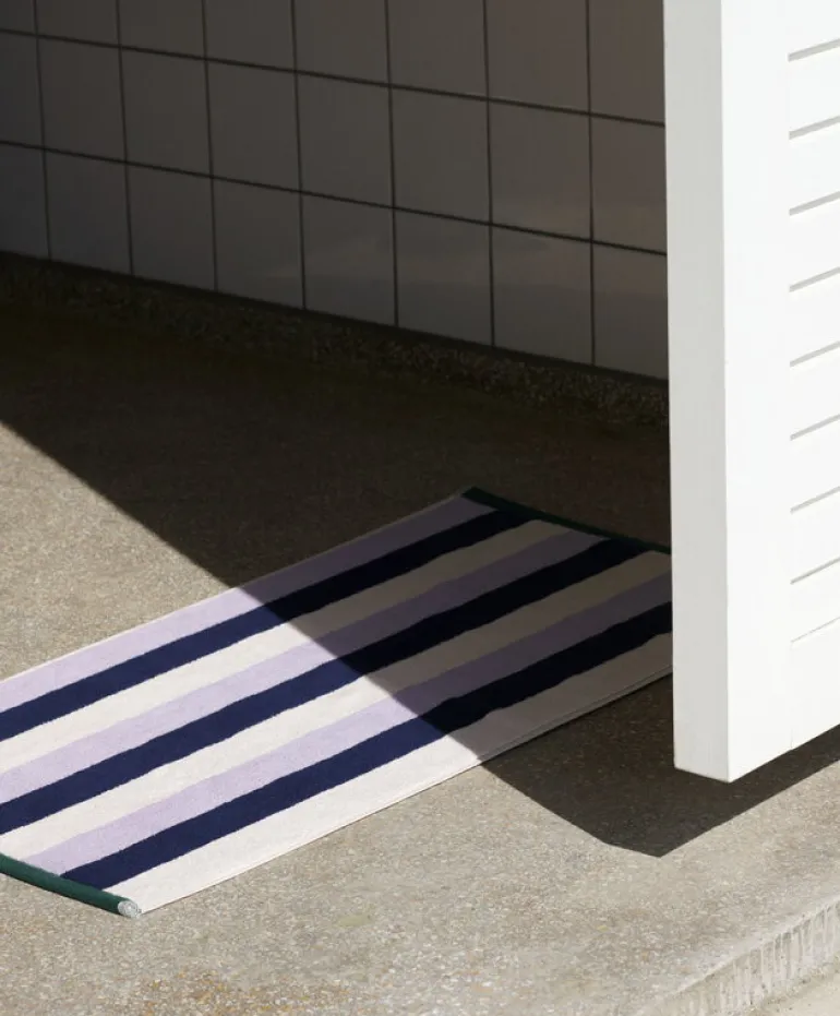 HAY:s Trio badrumsmatta påminner om färgglada strandhyddor. De skarpa, geometriska ränderna och de milda nyanserna passar ihop som glass och solsken, och det mjuka bomullsmaterialet känns behagligt mot huden. Fullända stämningen med HAY:s Trio badhanddukar.