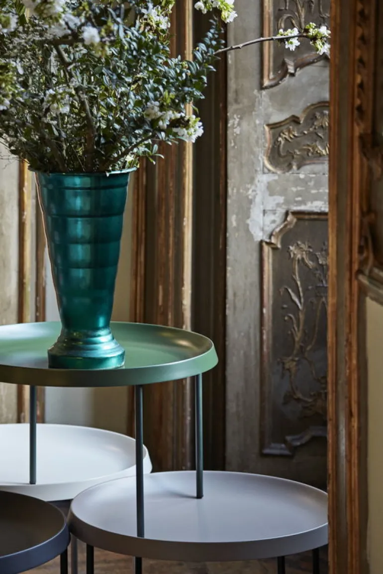 Hays soffbord Tulou utmärks av de smäckra metallbenen och den avtagbara bordsskivan med upphöjd kant. Inspirationen till Tulou, formgiven av den danska designbyrån GamFratesi, hämtades från de traditionella brickbordens funktionella estetik. Utöver att vara ett modern soffbord kan Tulou även användas som stor serveringsbricka – bordsskivan kan enkelt lyftas av från ramen, och den breda kanten gör att brickan är lätt att hålla och bära.