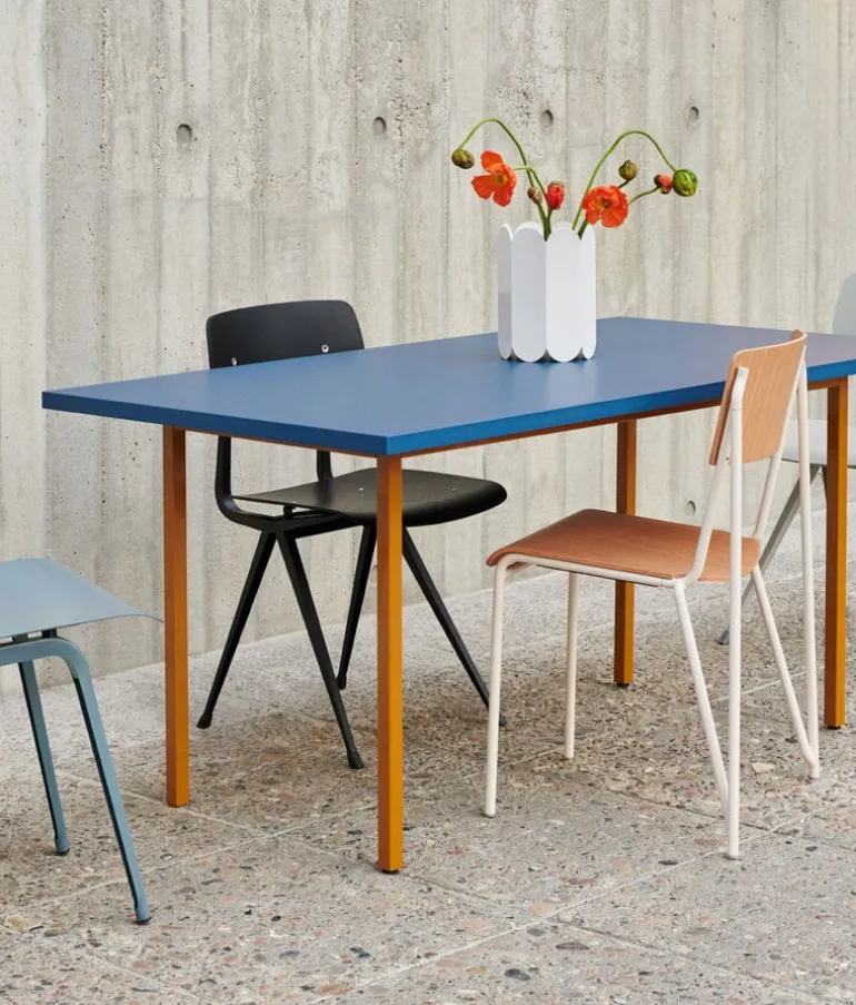 Den raka silhuetten kombinerad med en glad färgpalett skapar en slående kontrast, och tillför en touch av diskret glädje till dess omgivningar. Det fräcka men ändå klassiska Two-Colour bordet är lika perfekt som ett matbord eller som ett konferensbord på ett kontor.