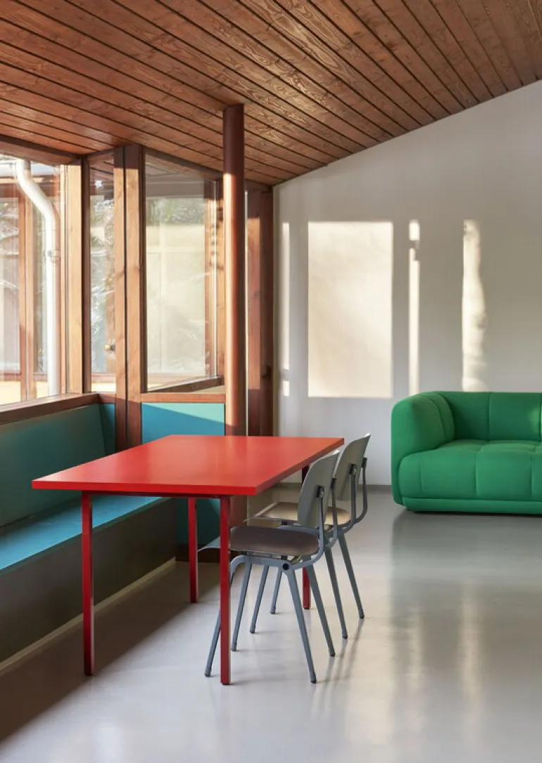 Den raka silhuetten kombinerad med en glad färgpalett skapar en slående kontrast, och tillför en touch av diskret glädje till omgivningen. Det fräcka men ändå klassiska Two-Colour bordet är lika perfekt som matbord som konferensbord på ett kontor.