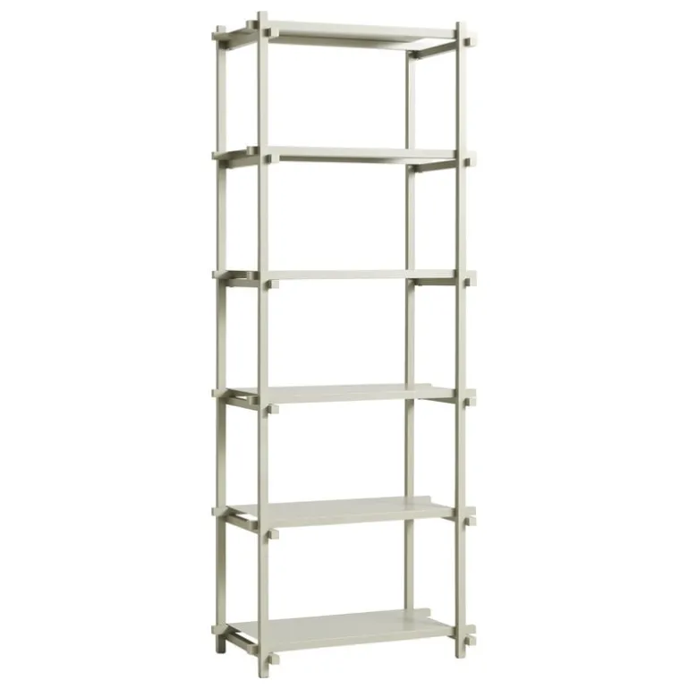 HAY:s hylla Woody ger en modern touch till traditionella hyllsystem i stegform. Designen, som omfamnar modernistiska principer, låter alla strukturella element, fogar och skruvar vara synliga, och hyllar snarare hyllans konstruktion än döljer den. Detta minimalistiska tillvägagångssätt ger Woody-hyllan sin distinkta, moderna elegans, samtidigt som fokus kan ligga på de föremål som står på hyllan – oavsett om det är köksredskap, böcker eller dina favoritprydnader.