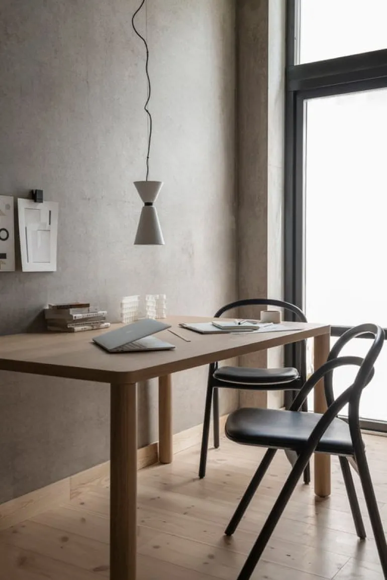 Log, som är designat av Julien Renault för Hem, är härligt okomplicerat i sin design och därför lämpligt för en mängd olika utrymmen och ändamål. Log är ett lätt bord, både visuellt och i vikt: dess vackra fanerade bordsskiva döljer en bikakestruktur som gör bordet lätt trots de robusta benen i massivt trä. Bordet passar både som matbord och som skrivbord. Den minimalistiska designen mjukas upp av ramens rundade kanter.