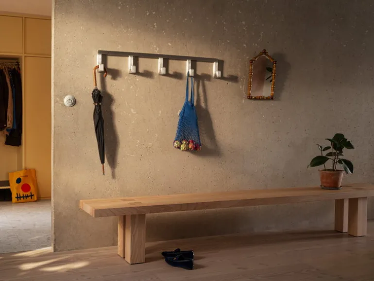 Hems Tig Hook förskönar din hall eller klädkammare med drag av modern design och industriell charm. Den robusta klädhängaren med fem krokar är tillverkad av anodiserat aluminium, där de dekorativa gjutmärkena oväntat nog har lämnats kvar synliga. Vanligtvis försöker man dölja den här typen inslag, men formgivaren Kwangho Lee ville framhäva skönheten hos det som vanligen göms undan. Tig Hook fungerar utmärkt en och en, eller med flera väggkrokar placerade på rad.
