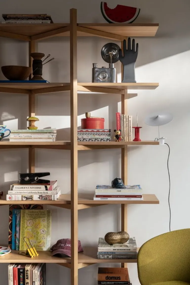 Den höga hyllan Zig Zag från Hem erbjuder en sofistikerad plattform för dina böcker, prydnadssaker, kontorsmaterial eller annat som behöver organiseras på ett snyggt sätt. Den smarta, dragspelsliknande strukturen på hyllan gör det möjligt att montera den utan några verktyg: sträck helt enkelt ut hyllan och börja fylla den med dina favoritprylar. Bokhyllan är designad av Studio deForm.