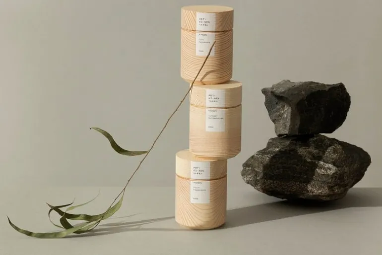 Den är förpackad i en plastfri träburk, formgiven av Mona Isotupa som vann designtävlingen FDS Award 2017. Burken är gjord i finskt kärnvirke av furu. Det har ett vackert naturligt mönster som ger en rofylld känsla av de nordiska skogarna, i ditt badrum eller på ditt nattduksbord.