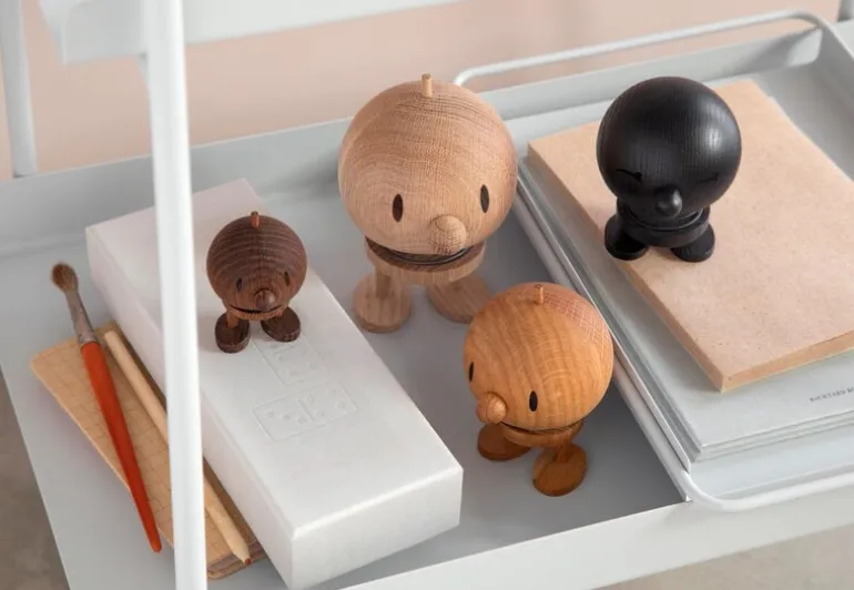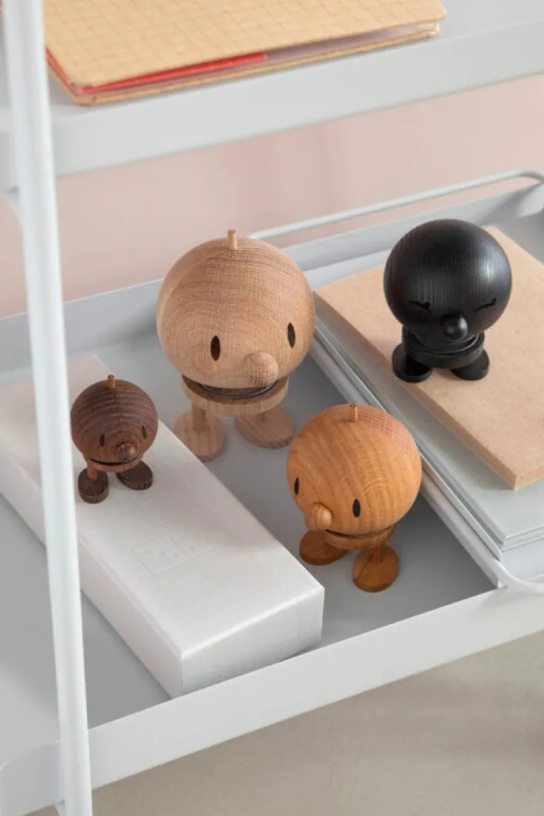 Hoptimists Bumble fångar essensen av dansk design med sin lekfulla anda, samtidigt som den stämmer väl överens med den skandinaviska minimalistiska elegansen. Den glada, leende figuren designades i slutet av 1960-talet av Hans Gustav Ehrenreich, som ville sprida positivitet och leenden i människors liv. Den livfulla Bimble charmar lika enkelt på en bokhylla i vardagsrummet som i barnrummet, och är dessutom en perfekt present.